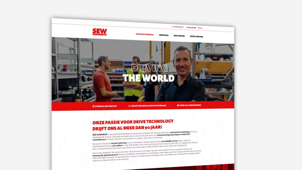 Om aan de buitenwereld te tonen waarvoor SEW-EURODRIVE staat, stelden we een uitgebreid strategisch marketingplan op. SEW-EURODRIVE is gespecialiseerd in mechanische aandrijvingen, automatiseringstoepassingen en industriële tandwielkasten. We deden diepte-interviews met medewerkers en een klantenbevraging. Op basis van die resultaten maakten we persona’s op voor SEW-EURODRIVE. Voor de uitvoering bedachten we onder andere een unieke brand story en staken die in een fris jasje. Benieuwd naar hoe we communiceerden over hun ijzersterk merkverhaal?